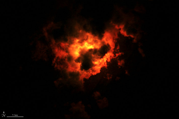 Another orbital view offers a more detailed, close-up view of the eruption. The Operational Land Imager (OLI) aboard Landsat 8 shows a Tolkienesque view of the Icelandic eruption in infrared.