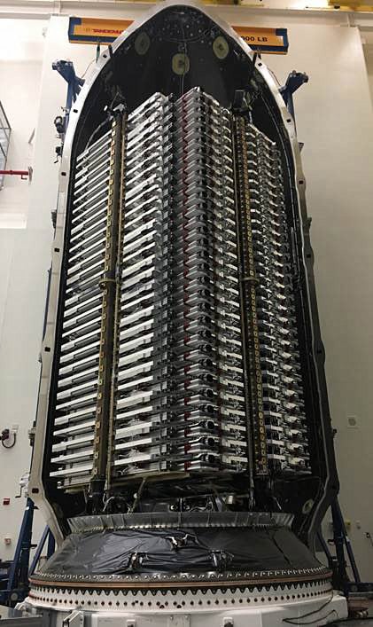 Each Starlink satellite is about the size of a table, and are flat-packed IKEA-style in the Falcon-9 nose fairing. Each satellite also sports a large solar panel that is unfurled once they reach orbit.