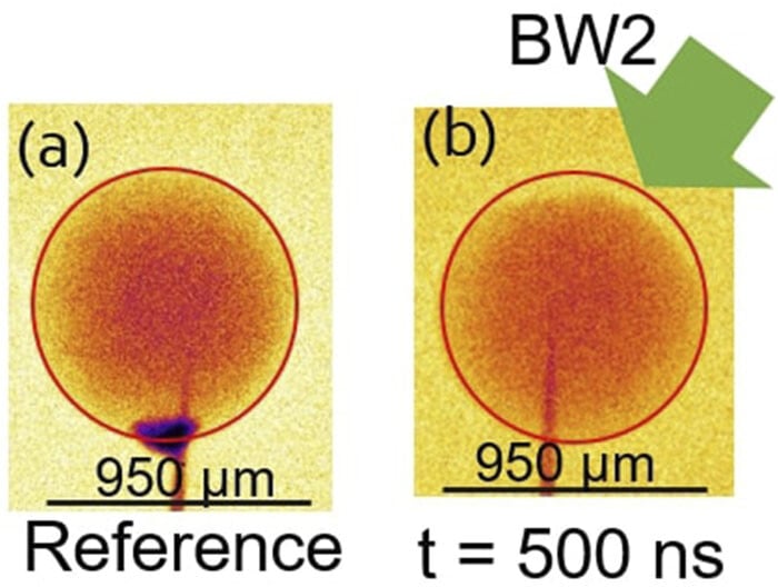 The team used a high-power laser to create a blast wave that spread through a chamber of gas with a foam ball inside of it. Using X-ray imaging, they were able to observe the compression of the foam ball being hit by the blast wave.