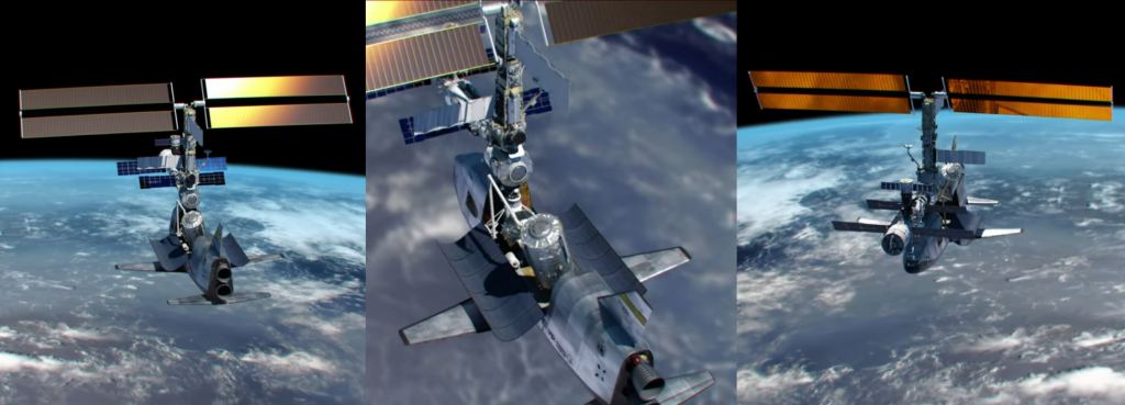 The details are beautifully rendered in the animation. It begins with the DC-3 STS launching atop a 10-engine booster, then relying on two rocket engines to reach LEO. A powered landing is also shown, and a final shot of the STS in orbit where it delivers a module to a growing space station. This gives viewers a chance to see what might have been had NASA gone with the DC-3 option instead.