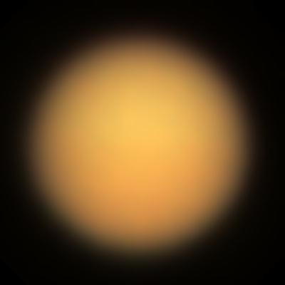 From a distance you can't see much of Titan. The Hubble Space Telescope took this picture of Titan in 1994, and it looks like a big, blurry orange.