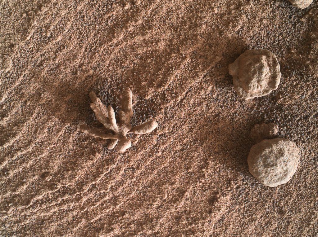 The Curiosity rover took a picture of something pretty enticing this week on the surface of Mars. While the object in question looks like a tiny little flower or maybe even some type of organic feature, the rover team confirmed this object is a mineral formation, with delicate structures that formed by mineral precipitating from water. The size of this tiny object is just 1 centimeter.