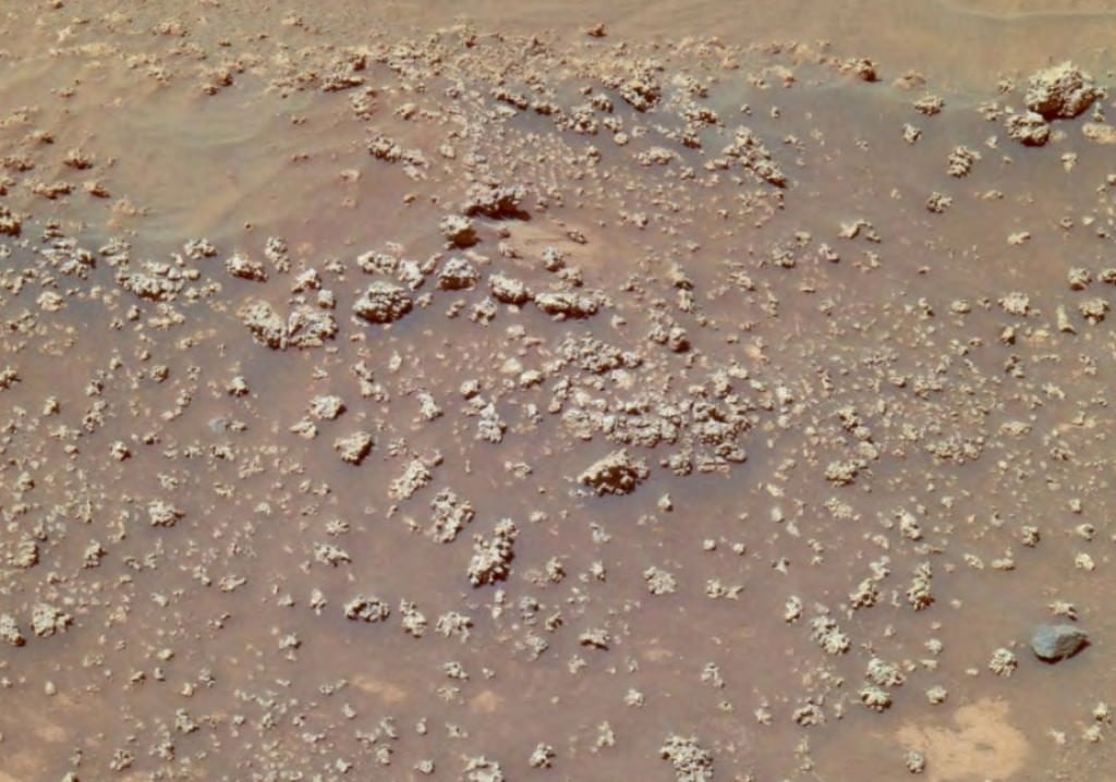 You may recall the term concretion from the Opportunity rover mission, which saw features that were nicknamed ‘blueberries,’ since they were small and round. You can see round concretions next to the flower-like feature in this image.