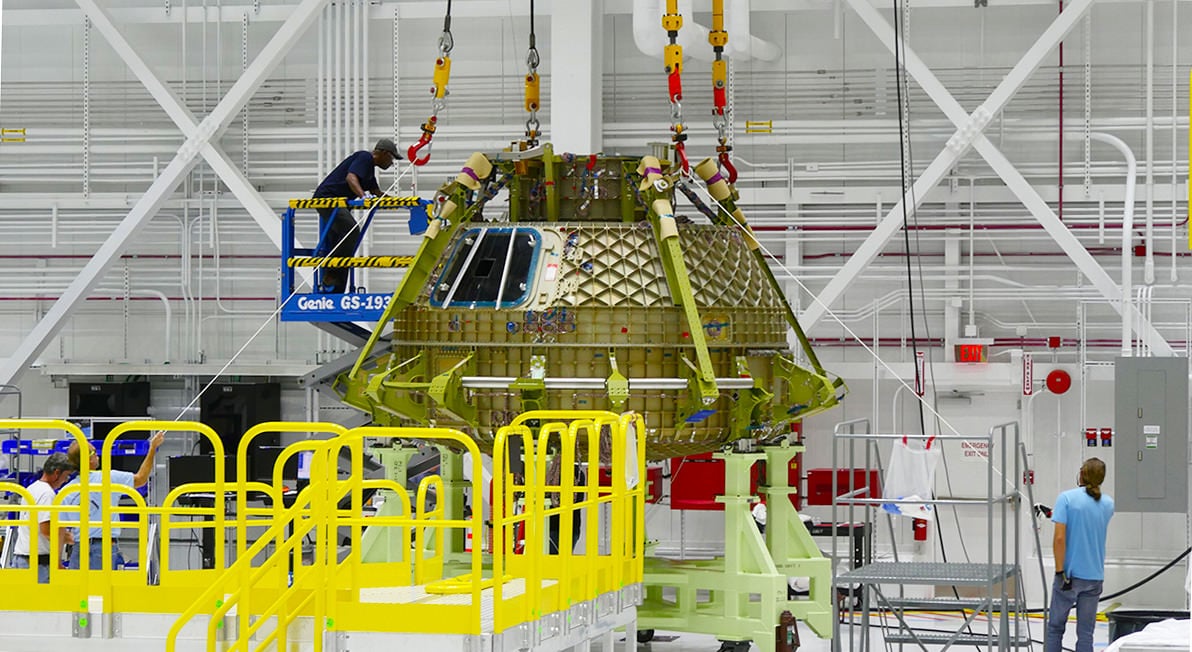 Although it will never fly in space, the STA is currently being built inside the renovated C3PF using the same techniques and processes planned for the operational spacecraft that will carry astronaut crews of four or more aloft to the ISS in 2018 and beyond.