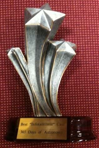 This is the first time I've ever gotten to quote myself from a press release! What fun! And all of us who have worked with the 365 Days of Astronomy podcast are very excited about the award. Thanks to everyone who has participated by either submitting a podcast or listening! -- Nancy