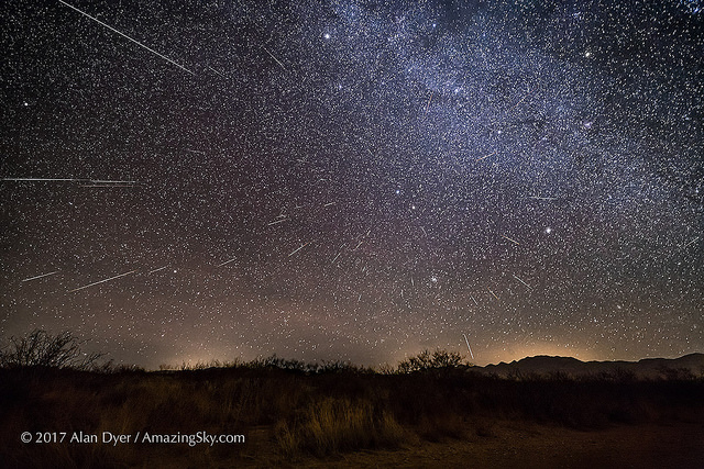 For mid-latitude northern hemisphere observers, the radiant for the Andromedids is already high to the east at sunset in early December, and transits near local midnight. The Moon reaches New phase on December 7th, another plus for an Andromedid vigil.