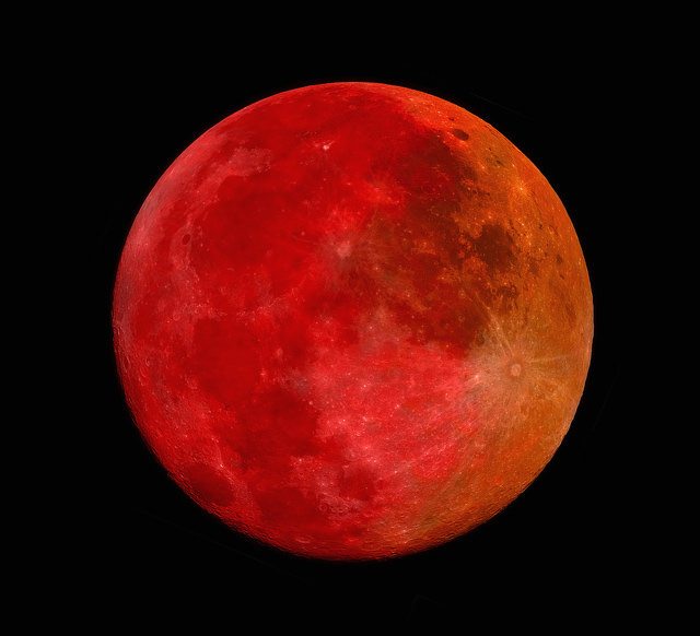Photographer Joseph Brimacombe created this stunning image of a ruddy Moon made during the total lunar eclipse of December 10, 2011. Images taken during the penumbral and total phases of the eclipse were combined to create a full-face image of the Moon in color. Beautiful!