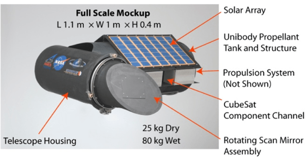 Large space missions are expensive, so using a much less expensive spacecraft to collect preliminary data on the mission target could potentially help save money on the larger mission's final design. That is the role that Hummingbird would play. It is designed essentially as a propulsion system, with slots for radiation-hardened CubeSat components as well as a larger exchangeable payload, such as a telescope.