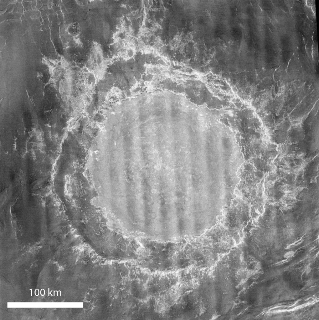 Researchers from Brown University studied Venus's largest impact basin, Mead Crater. The basin was created by a large object that smashed into Venus between 300 million and 1 billion years ago, leaving a crater more than 170 miles in diameter. Mead is surrounded by two clifflike faults, which appear as rocky ripples that have been remained unchanged over time. Using computer models, the researchers found that for those rings to be where they are in relation to the central crater, Venus's lithosphere — its rocky outer shell — must have been quite thick, far thicker than that of Earth.