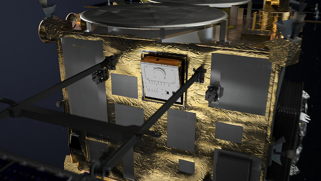 MASCOT the hopping robot attached to Hayabusa2 before deployment. Artist's illustration. Image Credit: DLR (CC-BY 3.0)