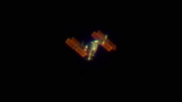 Woah, is that home to six people in space now some sort of a ghoul? Here is a video of the International Space Station in an odd shade of ... green. And no, it's not because astronauts secretly painted the hull