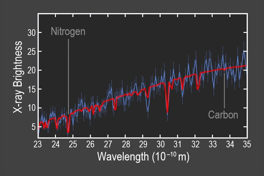 NASA's Chandra X-ray Observatory and ESA's XMM-Newton telescope both captured the X-ray spectra of the event, and further observations from other observatories provided UV spectra. Together, this gave astronomers a detailed look at the composition of the doomed star. In this recent work, the team was able to analyze the spectra of both the material captured in orbit around the black hole and gasses that streamed away from the black hole. By comparing things such as the abundances of nitrogen and carbon in the stellar debris, the team was able to confirm the star had a mass of about 3 Suns.