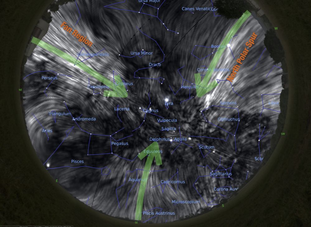 Astronomers discovered the North Polar Spur and the Fan Region in the 1960s when radio astronomy was getting going. The North Polar Spur is a massive ridge of hot gas that rises above the plane of the Milky Way. It emits x-rays and radio waves. Over the decades since its discovery, there's been an ongoing discussion about what it actually is and how far away it is. Astronomers thought it could be related to the Fermi Bubbles or a feature carved out by ancient supernovae explosions.