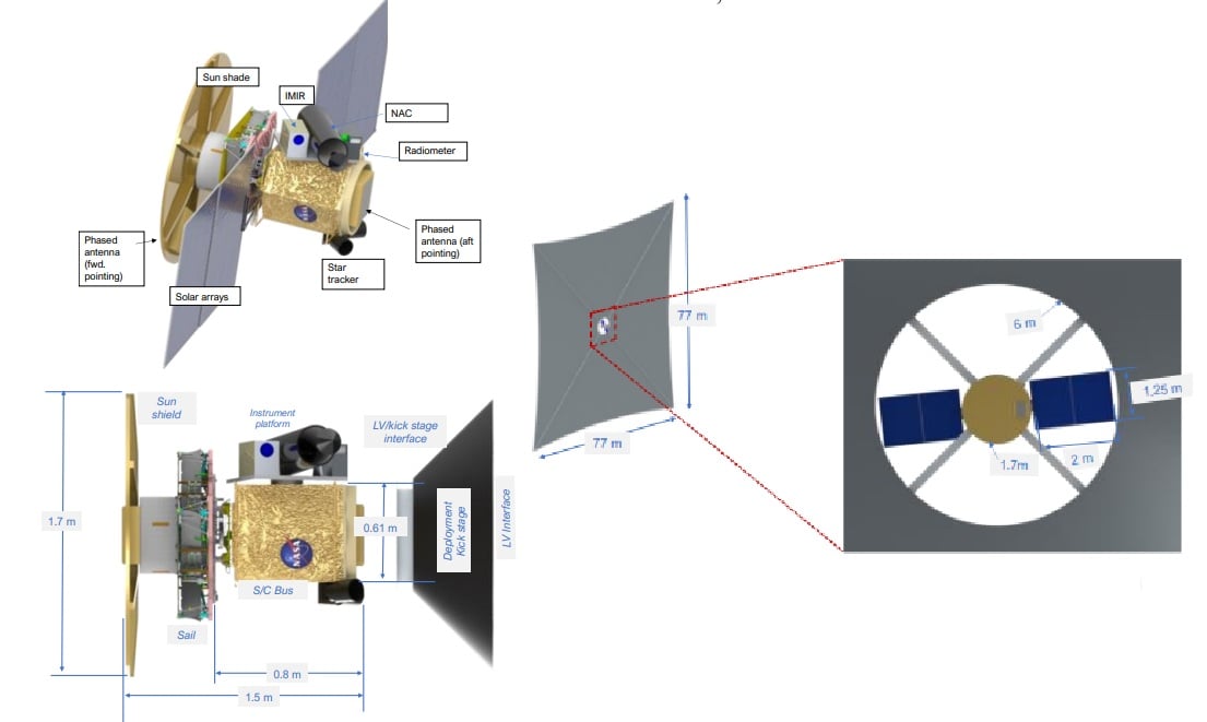 Instruments called for on the mission include a mid-infrared spectrometer for mineral mapping, a radiometer to measure surface temperature, and a Narrow Angle Camera (NAC) capable of 1-meter scale resolution.