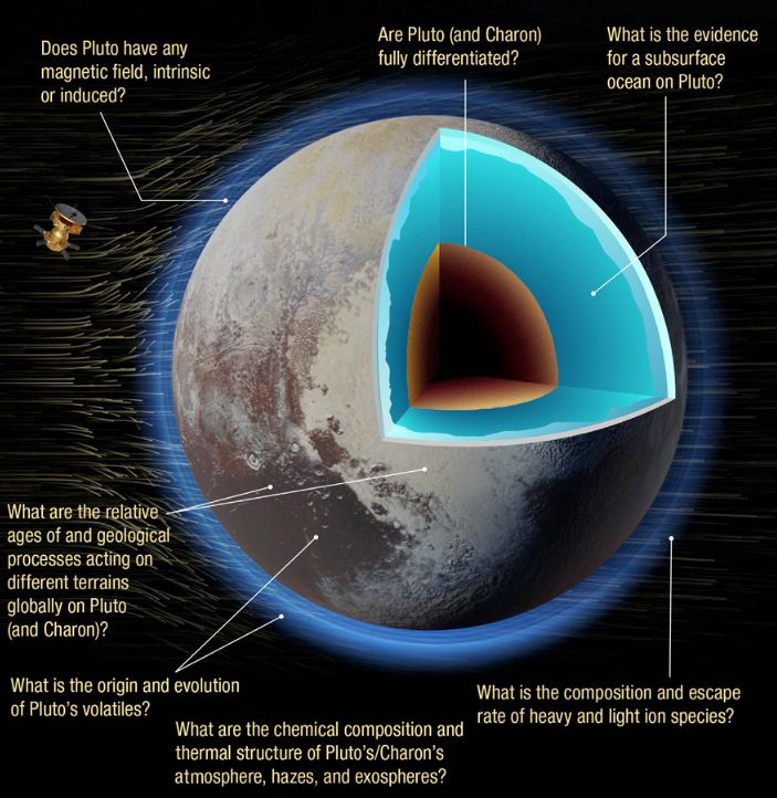That last one might be the most intriguing, as the answer for Pluto's internal structure might be that it has a subsurface ocean despite being so far away from the Sun. There is already some evidence for this, as Pluto appears to have an active surface, and an ice sheet called Sputnik Planitia could potentially be caused by a subsurface ocean. We don't have enough data yet to prove it.