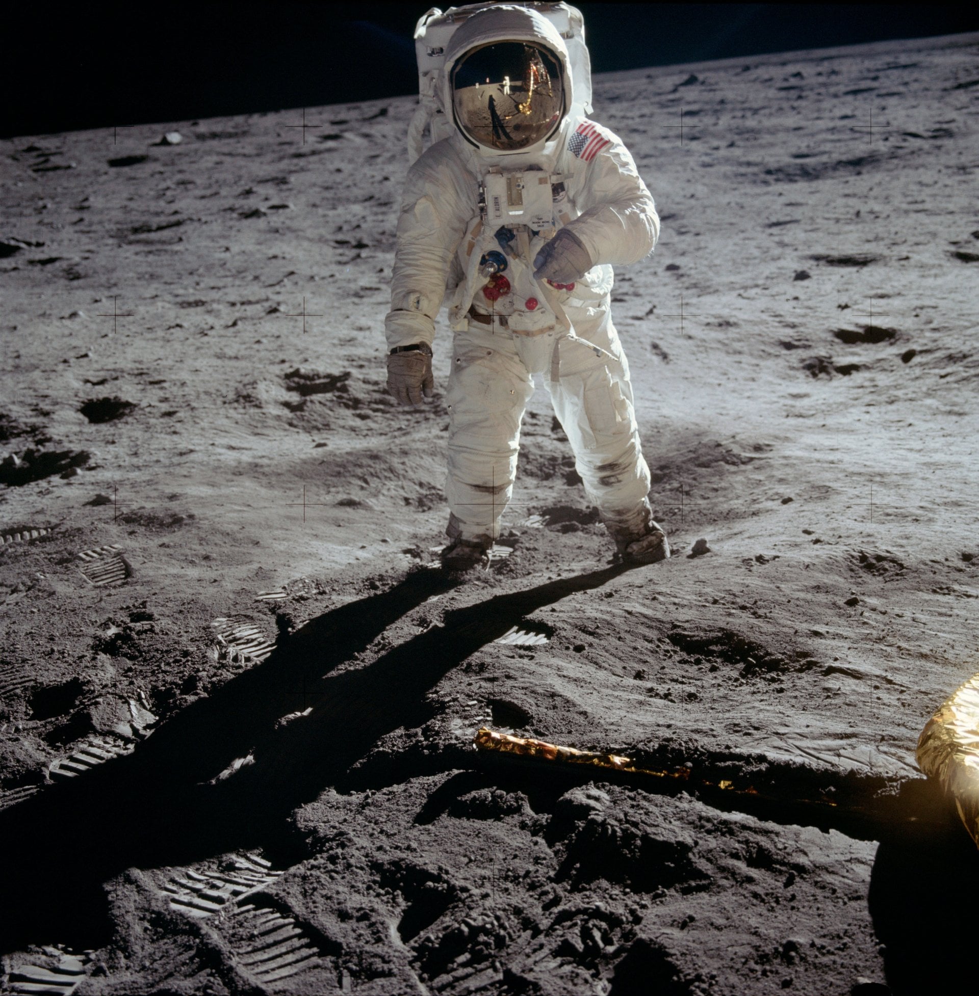 *Buzz Aldrin poses on the lunar surface during Apollo 11. Neil Armstrong, who took the photograph, is visible in Aldrin's visor. Credit: NASA*