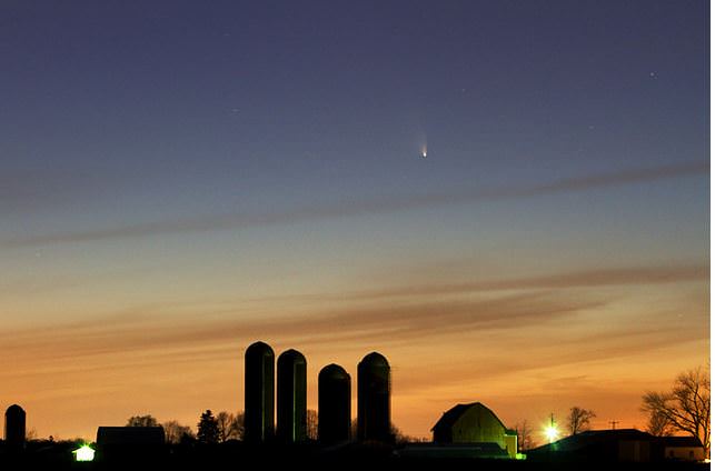 Comet C/2011 L4 (PanSTARRS) keeps getting easier to see, and over the weekend, we were inundated with images and videos from astrophotographers around the world. NASA says that solar heating from the comet's close pass of the Sun last week has caused the comet to glow brighter than a first magnitude star. Bright twilight sharply reduces visibility, but it is still an easy target for binoculars and small telescopes 1 and 2 hours after sunset. And as of March 15th, people reported they can see the comet with the unaided eye.