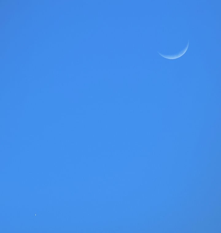 , Venus was visible during the daylight hours this Saturday, very close to the crescent Moon. If you had clear weather you may have been able to catch a glimpse of the scene above, photographed from my location in north Texas at 6:35 p.m. local time.