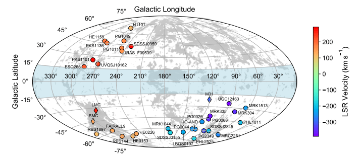 "When the light from the quasar passes through the gas we're interested in, some of the light at specific wavelengths gets absorbed by the atoms in the cloud," said STScI's Elaine Frazer, who analyzed the sightlines and discovered new trends in the data. "When we look at the quasar light spectrum at specific wavelengths, we see evidence of light absorption that we wouldn't see if the light hadn't passed through the cloud. From this, we can draw conclusions about the gas itself."
