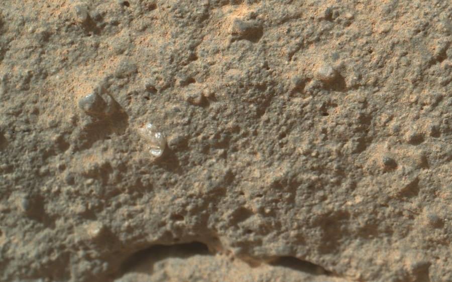 Today, deputy principal investigator of MAHLI, Aileen Yingst of the Planetary Science Institute, told reporters that the big rock of which the flower is a part, named 'Gillespie Lake,' is a relatively dust free, coarse grained sandstone, with several larger grains in the matrix, "which are interesting because of their color, luster and shape," she said, and this unusually shaped grain is lighter in color – almost opaque -- which indicates it could be made of something different than the rest of the rock.