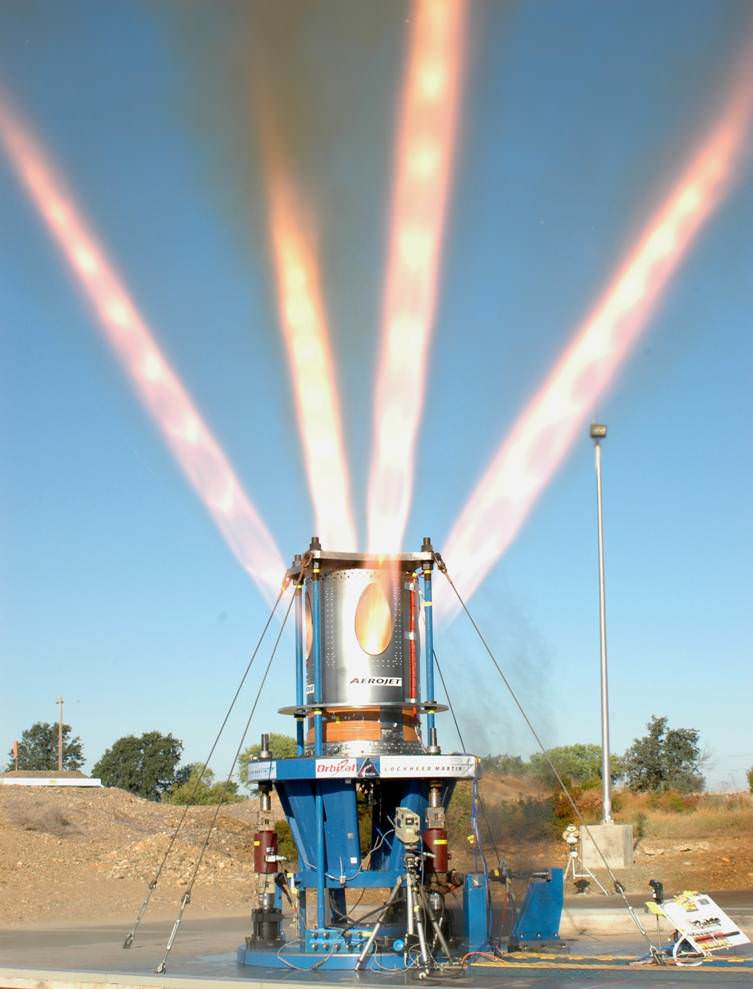 [caption id="attachment_90359" align="aligncenter" width="580" caption="In this image an AJ26 liquid rocket engine is tested. These engines are utilized as part of Orbital Science's Taurus II program. Photo Credit: Aerojet"]
