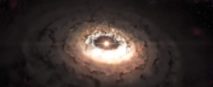 So where can a newborn planet, comet or asteroid hide? Nienke van der Marel, a PhD student at Leiden Observatory in the Netherlands, and lead author of the article, was using ALMA along with her co-workers, to take a close look at Oph IRS 48 and discovered a torus of gas with a central hole. This absence of dust particles was very different from earlier results picked up on ESO's Very Large Telescope.