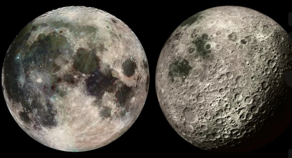 The Moon's cratered surface is a testament to the chaos that defined the Solar System in its adolescence. The left panel shows the near side of the Moon, photographed by NASA's Galileo spacecraft. The right panel shows the lunar far side, photographed by NASA's Apollo 16 spacecraft. Image Credits: (Left) NASA/JPL/Caltech (NASA photo # PIA00405); (right) F.J. Doyle/National Space Science Data Center.