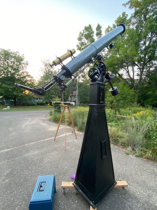 "I have been restoring telescopes for quite a few years—primarily a number of Japanese refractors from the 1940s-1970s made by Goto, Royal Astro Optical Inc, Yamamoto, Unitron and others. In 2021, I found a dilapidated 4" refractor on Craigslist in Minneapolis, which turned out to be a nearly one hundred year old brass antique made by Brashear in Cleveland. This scope was cleaned up and I made a custom mount for it from scratch. In addition to the restoration projects, I also help maintain the fleet of loaner telescopes for the Minnesota Astronomical Society, for which I am an active member."