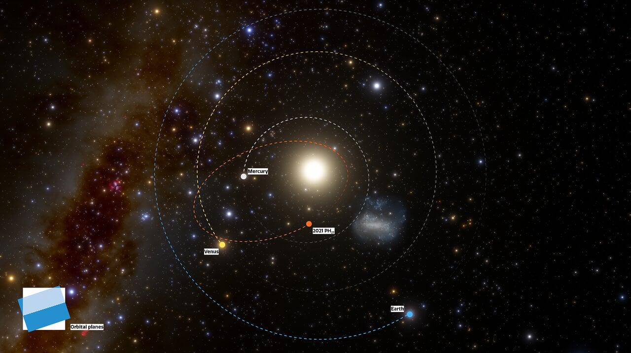 Asteroid 2021 PH27 was discovered earlier this month, and it has the shortest orbital period of any known asteroid in the Solar System. The orbit of the approximately 1-kilometer-diameter asteroid brings it as close as 20 million kilometers (12 million miles or 0.13 au), from the Sun every 113 days.