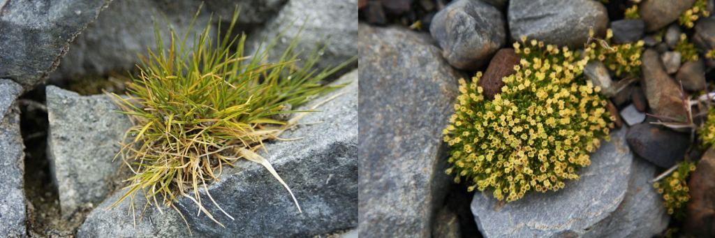This vegetative colonization of Earth's coldest region begins with mosses and lichens. Mosses are pioneer species, the first organisms to move into a newly-available habitat. These non-vascular plants are tough and hardy, and can grow on bare rock in low-nutrient environments. They create a foundation for the plants that follow them by secreting acid that breaks down rock and by providing organic material when they die.