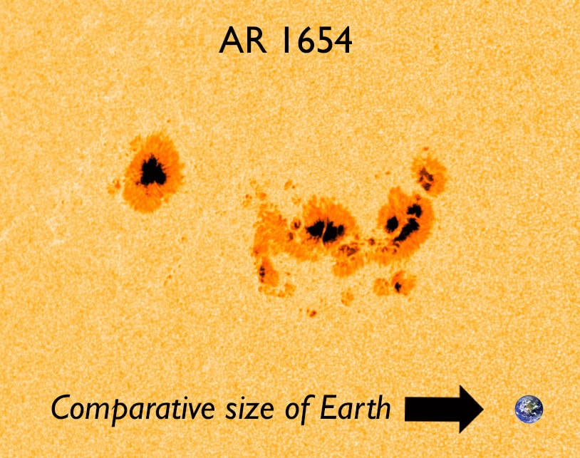 , AR1654 "could be the sunspot that breaks the recent lengthy spell of calm space weather around our planet."