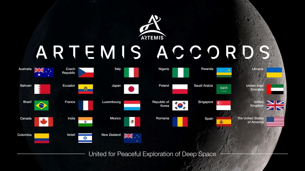 The Artemis Accords were established in 2020 as an international cooperative effort to ensure safe and prosperous lunar exploration that currently consist of 27 nation signatories and seven founding nations (in alphabetical order): Australia, Canada, Italy, Japan, Luxembourg, United Arab Emirates, United Kingdom, and the United States of America.
