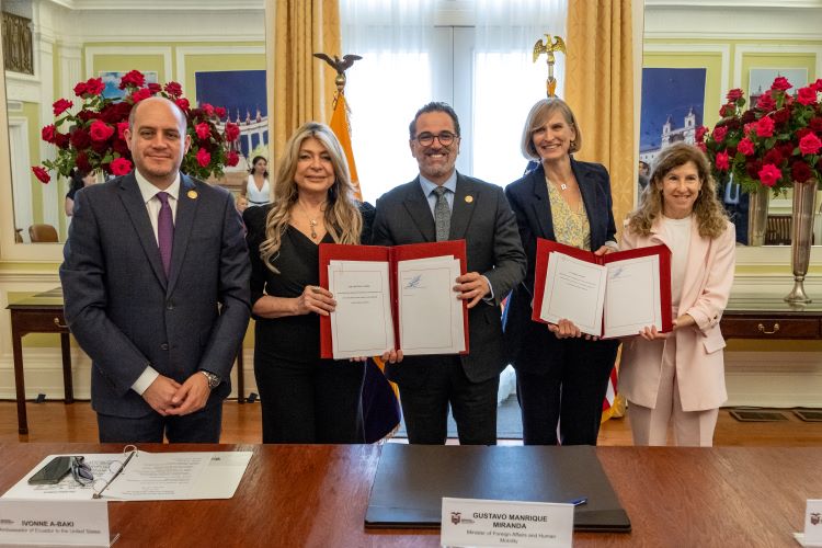 This was followed up by NASA announcing on June 21 that Ecuador became the 26thcountry to sign the Artemis Accords, with the signing ceremony taking place at the Ecuador embassy in Washington DC. Karen Feldstein signed on behalf of NASA while Ecuador's foreign affairs minister, Gustavo Manrique Miranda, signed on Ecuador's behalf. Other key delegates in attendance included U.S. Department of State Director of the Office of Space Affairs, Valda Vikmanis Keller; Ambassador of Ecuador to the United States, Ivonne A-Baki; and Ecuador Minster of Production, Foreign Trade, Investments and Fisheries, Julio José Prado.