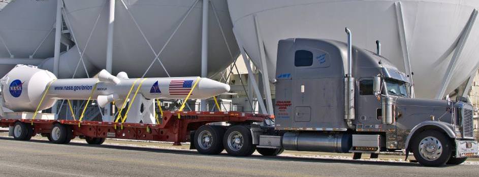 [/caption] Imagine driving along in your car, minding your own business and getting passed by this. It could happen to you this week. This is a 13.7 meter (45 feet) -long full-scale mock-up that's part of the rocket assembly for the launch abort system for the new Orion crew exploration vehicle. The system hit the road on Tuesday, March 3, 2009, and is traveling from NASA's Langley Research Center in Hampton, Va., to White Sands Missile Range in New Mexico to undergo the first flight tests of the system. The launch abort system will allow the astronaut crew to safely escape in the event of an emergency during launch.