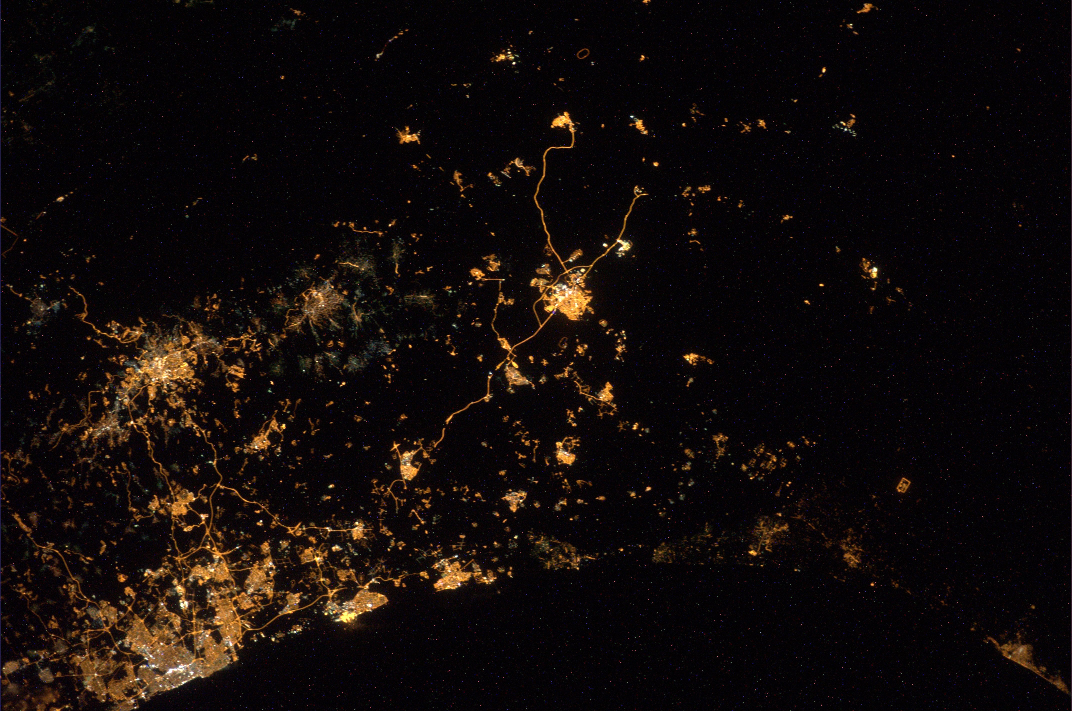 Gerst described the scene as "streaks of light going forth and back over a dark Earth, occasionally lit up by orange fireballs."