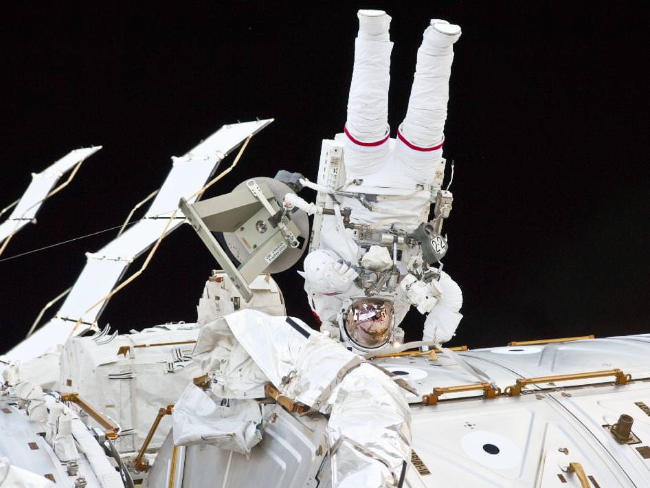 indicated that Mastracchio (the crew medical officer) was examining Hopkins' eyes as part of ongoing work looking at how microgravity affects ocular health. Flight controllers also moved one of the solar arrays for Mastracchio to take pictures and monitor how the mast is doing "for future inspections", NASA stated.