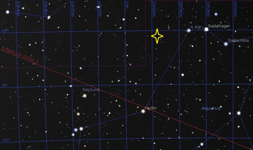 The 'star' was ULAS J224940.13-011236.9, an L-type sub-stellar brown dwarf near the Aquarius-Pisces border. The cumbersome, phone number-style name comes from the UKIDSS Large Area Survey (ULAS) study hunting for dwarf stars, plus the object's position in the sky in right ascension and declination. Located 248 light-years distant, ULAS J2249-0112 (for short) weighs in at just around 15 Jupiter masses, with a radius about a 1/10th that of our Sun; any tinier, and it wouldn't even rank as a sub-stellar brown dwarf.