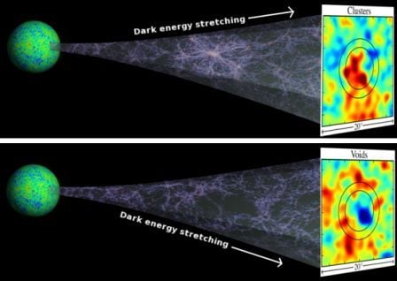 [/caption] When the team compared galaxies against the CMB, they found that the microwaves were a bit stronger if they had passed through a supercluster, and a bit weaker if they had passed through a supervoid.