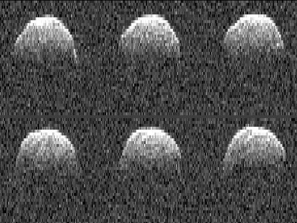 (Top image: series of radar images of asteroid 1999 RQ36 were obtained by NASA's Deep Space Network antenna in Goldstone, Calif. on Sept 23, 1999. Credit: NASA/JPL-Caltech)