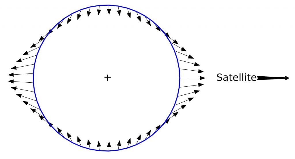 The gravitational dance between massive bodies, tidal forces occur because the pull of gravity from an object depends upon your distance from it. So, for example, the side of Earth near the Moon is pulled a bit more than the side opposite the Moon. As a result, the Earth stretches and flattens a bit. On Earth, this effect is subtle but strong enough to give the oceans high and low tides. Near a black hole, however, tidal forces can be much stronger, creating an effect known as spaghettification.