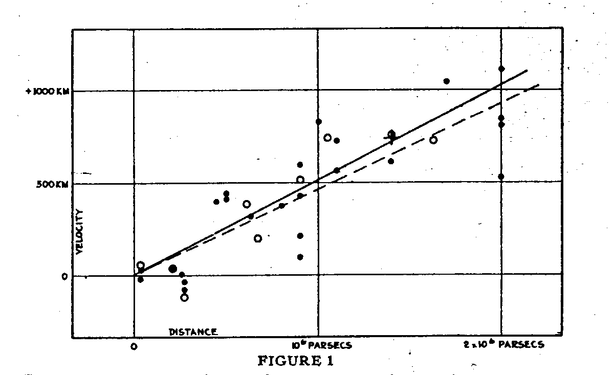 In 1929 astronomer Edwin Hubble made a remarkable measurement. Earlier in that decade, he had discovered that the Andromeda Nebula was not a nebula at all, but an entirely different galaxy completely separated from the Milky Way by millions of light-years of cold, hard nothing. He then expanded that initial discovery and began compiling a catalog of galaxies and their distances from us.