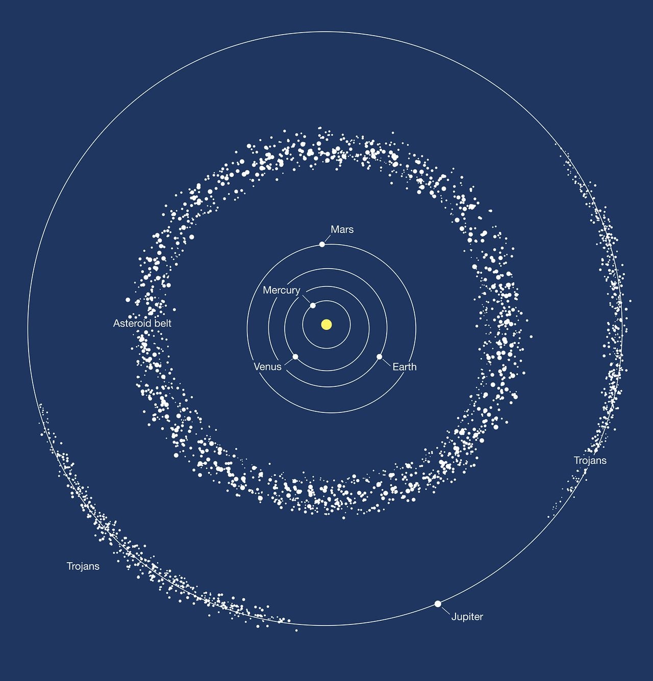 The result: gaps, where asteroids tried to make a home for themselves, but Jupiter didn't let them.