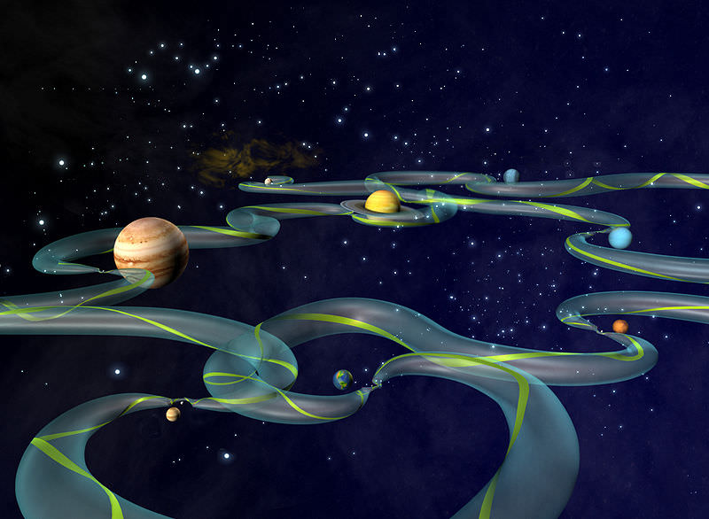 Mathematical analysis of the gravitational interactions between three or four bodies (say, your spacecraft, the Earth and the Sun – and then add Mars too) – is complex and has some similarities with chaos theory. But such an analysis can identify interconnecting pathways right across the solar system, which ITN proponents refer to as 'tubes'.