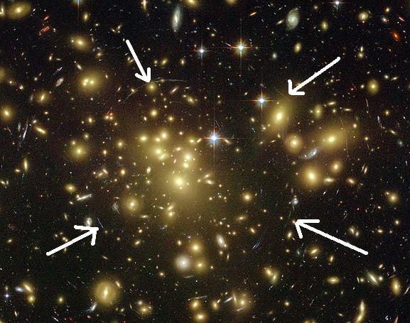 [caption id="attachment_81278" align="alignnone" width="580" caption="A distant, actually double, Einstein ring captured by the Hubble Space Telescope. Many more Einstein rings are visible from distant galactic clusters - although they are generally only 'visible' in radio wavelengths."]