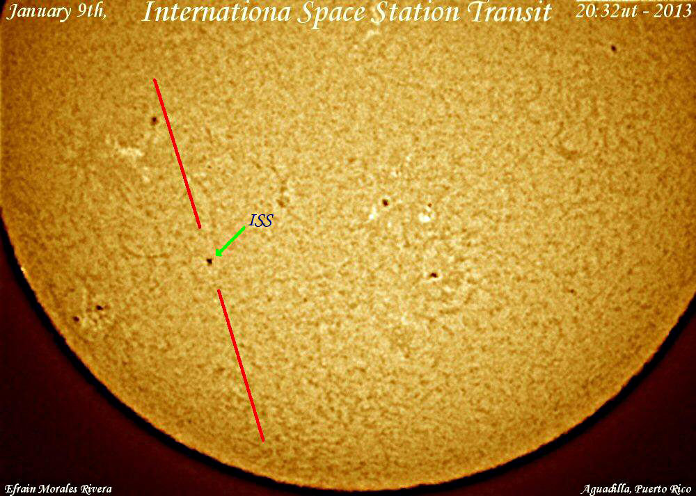 Animation of the International Space Station Transiting across the disc of the Sun on January 9th at about 20:32 UTC. Credit: Efrain Morales.