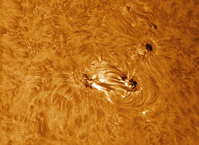 On February 19 and 20, 2013, scientists watched a giant sunspot form in under 48 hours. It has grown to over six Earth diameters. This image by astrophotographer