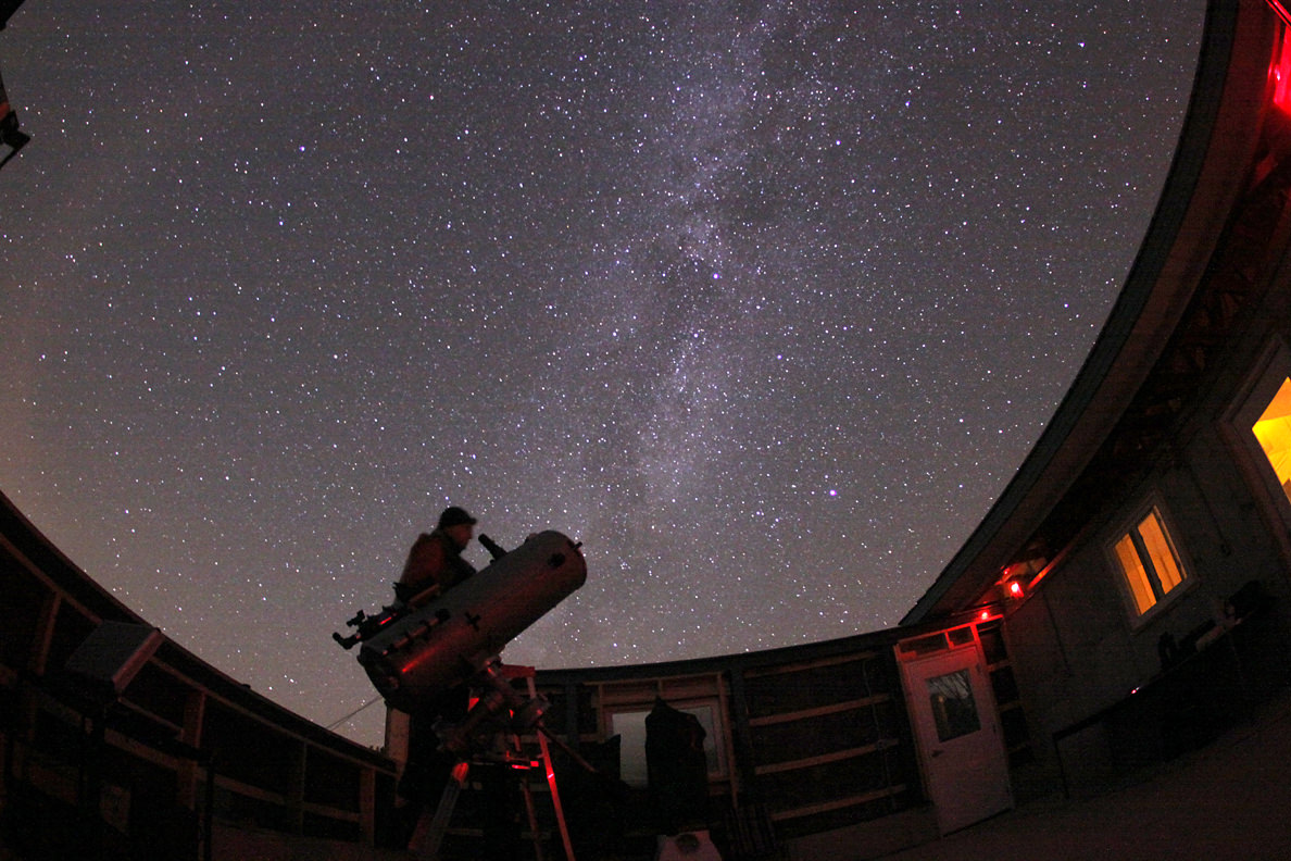 [/caption] John Hlynialuk captured this image of the night sky from their roll-off roof observatory (the ES Fox Obs.) just outside Wiarton Ontario on October 22, 2011. John can bee seen peeking at the eyepiece.