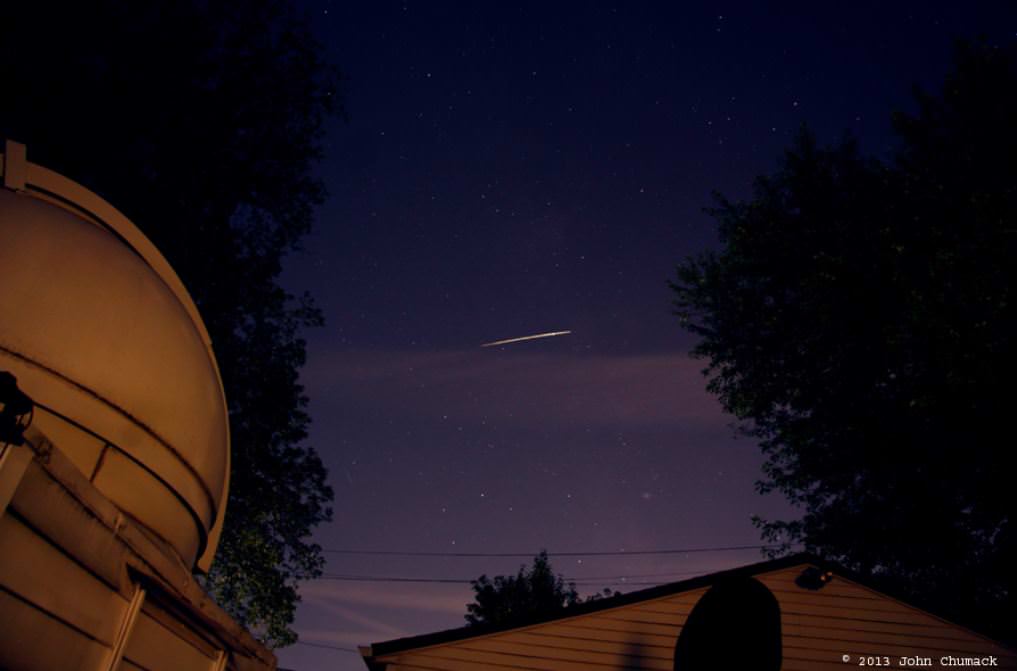 A Delta Aquarid meteor shows up through the clouds on July 29, 2013. Credit and copyright: John Chumack. [/caption]