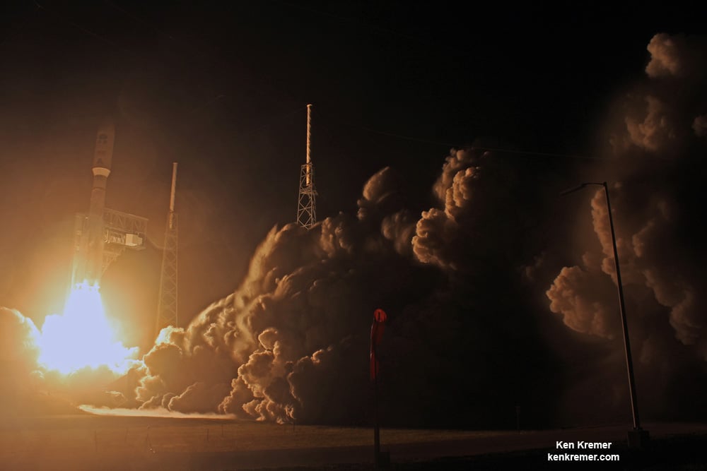 Ignition of ULA Atlas V rocket and GOES-R weather observatory at launch pad 41 at Cape Canaveral, Florida. Credit: Julian Leek[/caption]
