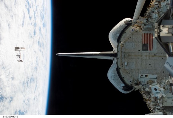 On Monday, shuttle Endeavour undocked from the ISS, and after the obligatory fly-around, the astronauts snapped this picture as the shuttle separated from the station. In my mind, this is one of the most amazing images from space ever. And there's more....